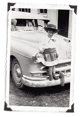 LAURA KAO DEVOJČICA: 1956. godine, obučena u kaubojsku odeću, pozira na novom Pontijaku svog dede po majci.